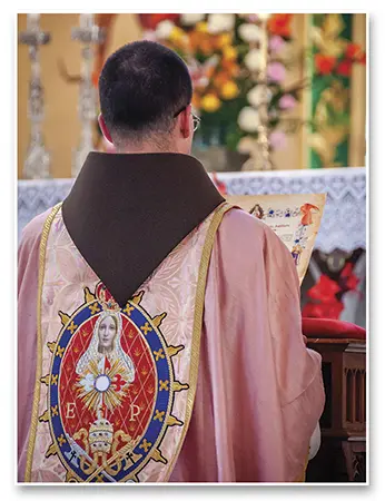 Both during Lent and Advent, we eagerly await the most important episodes in the life of Our Lord Jesus Christ: His birth and His Resurrection. In hopeful anticipation of these solemnities – always celebrated with white vestments – and as if already anticipating them, the Church uses rose-coloured vestments to express her joy at reaching the threshold of such long-awaited events. Furthermore, having accompanied her children in their penitential sacrifice during the two periods of preparation, symbolized by the purple vestments, the Mystical Bride of Christ sympathizes with them and softens her rigour a little with this pleasant hue. ◊