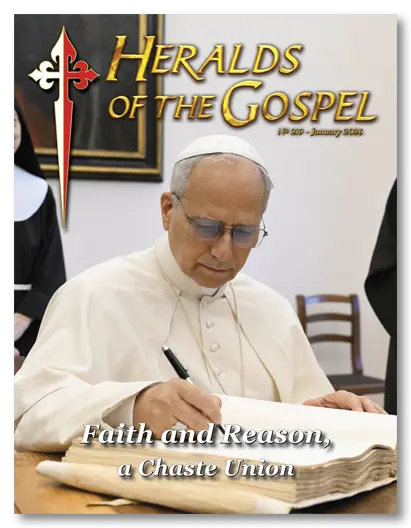Faith is merely a foretaste of the beatific vision, in which syllogistic reason will give way to pure intuition of the Holy Trinity. In our homeland, we will contemplate God “as He is” (1 Jn 3:2), through the light of glory – lumen gloriæ – infused into our spirit or, as theologians say, through a loan made to us from divine intelligence itself. There will be no more faith, only intellection resulting from a complete metanoia, that is, a radical change of mentality. This will not be produced by revolutions that distort human rationality, but infused by the Holy Spirit. ◊