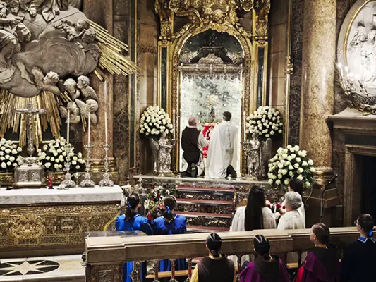 Spain – On January 26, the members of the Heralds of the Gospel present in the Spanish nation gathered in the Basilica of Our Lady of the Pillar in Zaragoza for a Holy Mass celebrated at the main altar. After the Liturgy, the entire assembly formed a procession to the chapel of the Blessed Virgin, where they made a floral offering to her.