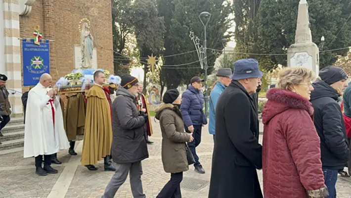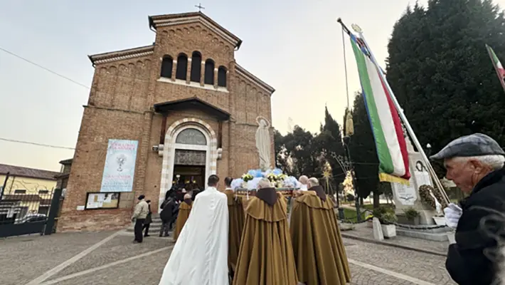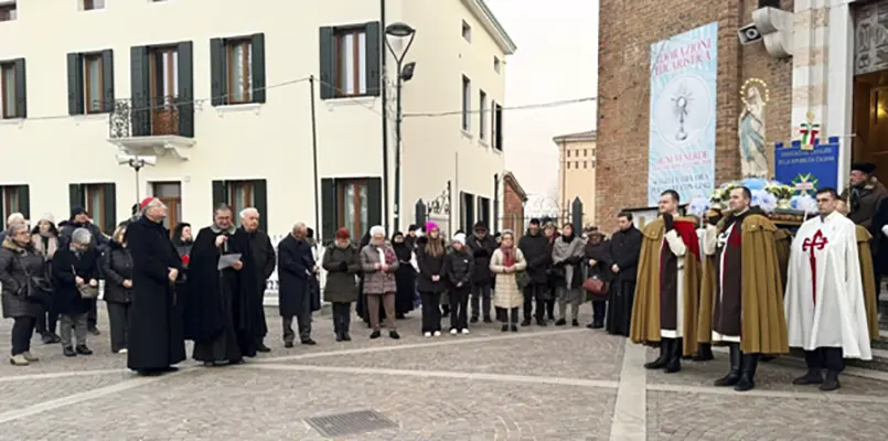 Italy – On the occasion of the centenary anniversary of the Parish of St. Hilary in the town of Malcontenta, located in the jurisdiction of the Patriarchate of Venice, the Heralds of the Gospel participated in the procession and Eucharistic Celebration, presided over by Bishop Francesco Moraglia, Metropolitan Patriarch.
