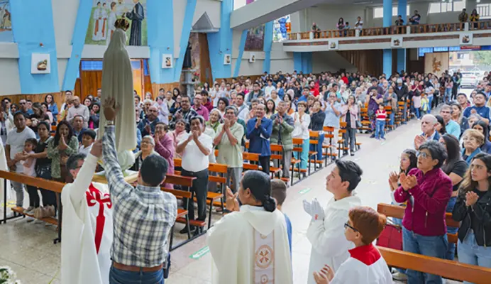 Ecuador – The Pilgrim Statue of the Immaculate Heart of Mary visited the Parish of St. John Bosco in the city of Cuenca during the Christmas celebrations. After the crowning of the Blessed Virgin, the faithful were invited to come closer to her to make their requests.