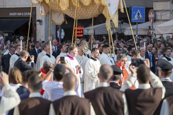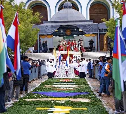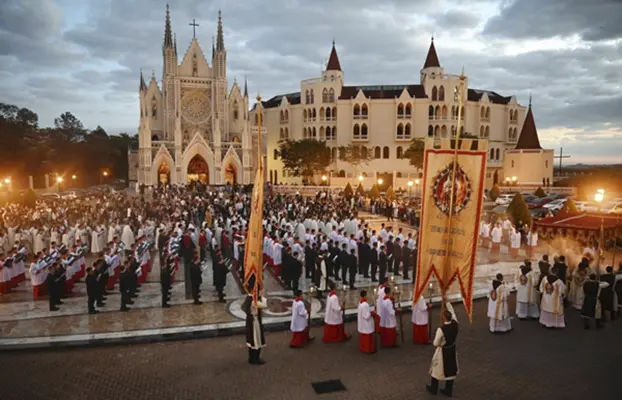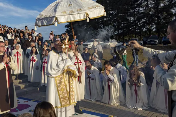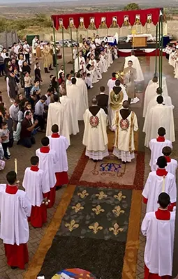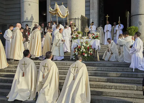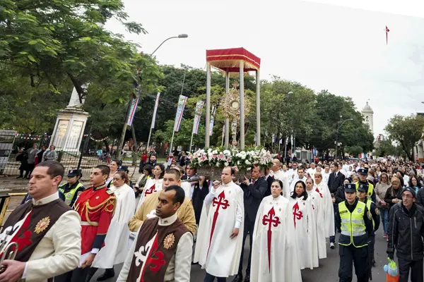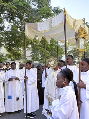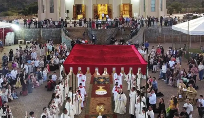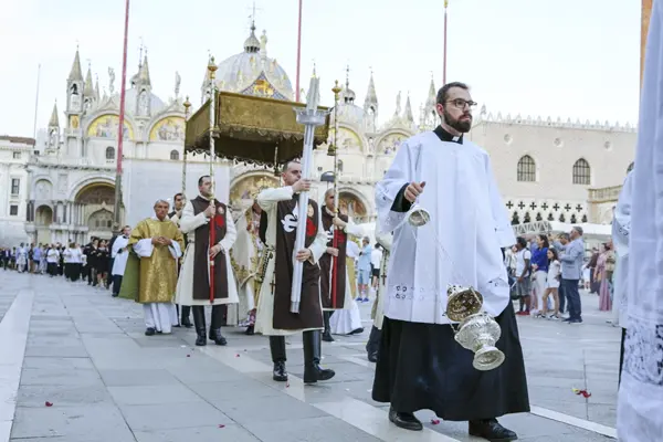 On the occasion of the Solemnity of Corpus Christi, the Heralds of the Gospel participated in various celebrations and processions in honour of the Blessed Sacrament. Highlights include the ceremonies held in Rome by Pope Leo XIV, who presided over Holy Mass in the Basilica of St. John Lateran and bore the monstrance with the Holy Eucharist to St. Mary Major Basilica; at the Basilica of San Marco in Venice; the Basilica of Our Lady of the Rosary in Caieiras, State of São Paulo; the Basilica of Our Lady of the Rosary of Fatima in Cotia (SP); the Metropolitan Cathedral of Asunción, Paraguay; the Metropolitan Cathedral of Maputo, Mozambique; in other Brazilian States: at the Church of Our Lady of Good Counsel in Piraquara, (PR); the Church of Our Lady of Claríssimos Montes, (MG); in the Church of San Salvador in Lauro de Freitas (BA); and the Heralds’ house in Maringá (PR).