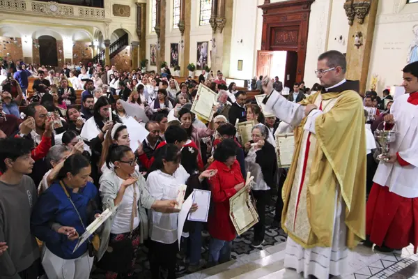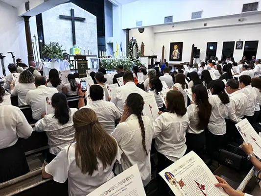Throughout the months of May and June, thousands of people made their consecration to the Blessed Virgin according to the method of St. Louis-Marie Grignion de Montfort. The photos below show views of the ceremonies held at Sacred Heart of Jesus Parish in Madrid, Spain; Our Lady of Fatima Church in Tocancipá, Colombia; Our Lady of Guadalupe (or Buen Tono) Church in Mexico City; Santa Sofia Church in Santiago, Chile; Santa Helena Parish in Antiguo Cuscatlán, El Salvador; the University Parish of Saint Mary of the Annunciation in Santo Domingo, Dominican Republic; and the house of the Heralds in Maputo, Mozambique. A Mass was also celebrated for those who had previously made their consecration with Fr. Manuel Rodríguez, EP, at the Shrine of Mary Help of Christians in Mexico City.
