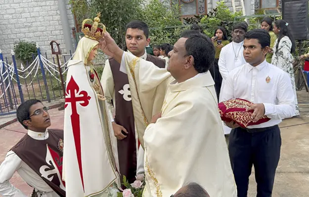 India – In the city of Bangalore, the month of May which is dedicated in a special way to the Blessed Virgin came to a close with the crowning of the Pilgrim Statue of the Immaculate Heart of Mary and a beautiful procession in the vicinity of St. Francis Xavier’s Cathedral, organized by members of the Heralds of the Gospel in India.