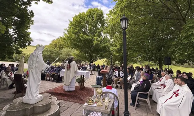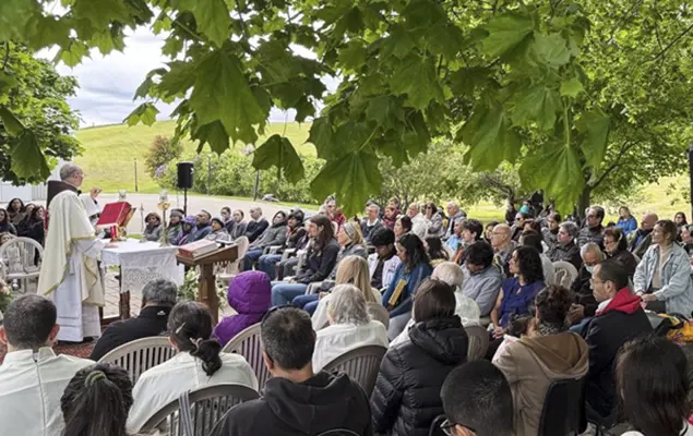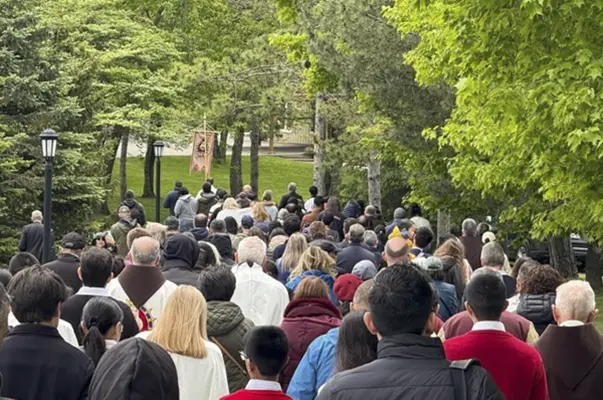 Canada – Members of the “Mary, Queen of All Hearts” Shrine Apostolate met at the house of the Heralds near Toronto for a May gathering, during which a processional Rosary was held on the grounds of the residence as well as the celebration of Holy Mass.