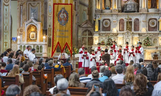 n December 19, 2025, sixty-nine members of the Heralds of the Gospel received the ministries of lector and acolyte during the solemn Mass presided over by Cardinal Raymundo Damasceno Assis, Archbishop Emeritus of Aparecida, at the Basilica of Our Lady of the Rosary in Caieiras (SP).