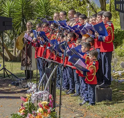 Costa Rica – To the sound of hymns sung by the youth choir of the Heralds of the Gospel, on January 24 the historic cross erected at La Sabana Metropolitan Park in the city of San José was blessed by the Apostolic Nuncio, Archbishop Mark Gerard Miles, after months of restoration. The ceremony was attended by the Costa Rican President, Dr. Rodrigo Chaves Robles, and the First Lady, Signe Zeikate, who advocated the project to restore this religious and civic symbol of the country.