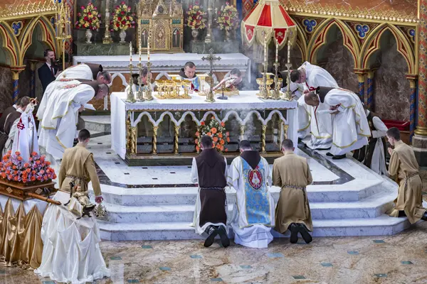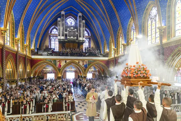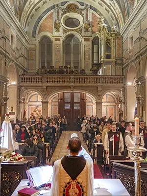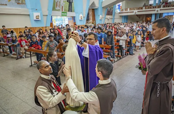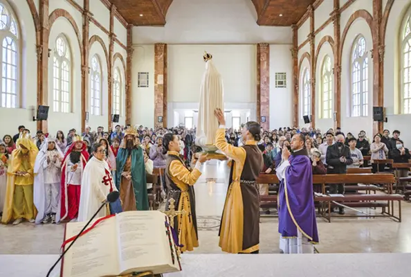 The photos below highlight the ceremonies that took place at the Collegiate Church of St. Isidore in Madrid, Spain; at the Church of the Blessed Sacrament, in Lisbon, at the Church of Pópulo, in Braga, and in the Church of Our Lady of the Conception, in Porto, Portugal; at the Basilica of Our Lady of the Rosary, in Caieiras; at the Cathedral of Our Lady of Grace, in Belém do Pará; and at the houses of the Heralds in the cities of Campos dos Goytacazes and Maringá (Brazil).