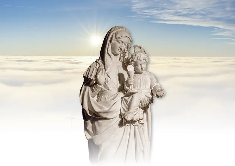 The presence of the Virgin is also manifest in the contemplation of certain parts of the Holy Mass. When kissing the altar and addressing the faithful, pronouncing the “Dominus vobiscum”, the priest repeats the angelic greeting: “Dominus tecum” (Lk 1:28). Then, when reciting the Confiteor, the minister bows his head before the holiest in Heaven and on earth, invoking the name of Mary, Refuge and Advocate of sinners. During the Offertory, as the faithful silently place their intentions on the altar, they remember the secret offering that the Redeemer made of Himself in the most pure womb of His Mother. And, as he adds the drop of water to the chalice as a symbol of the union between the divine and human natures, the celebrant recalls the one through whom this mystery was accomplished.11